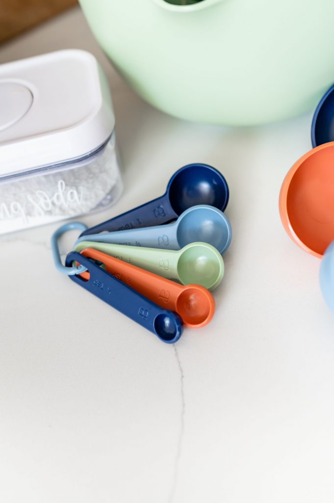 Last but not least, I’m loving these cheery, bright-colored mixing bowls and measuring cups/spoons. Again, you cannot beat the price for this quality and look! My kids are particularly excited to start baking with this happy-hued new collection!