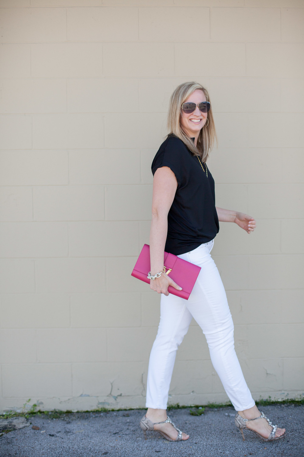 Date nights can come few and far between for us moms, so when a night off does come along, the last thing you want to do is spend hours worrying about what to wear. The perfect solution for your night on the town is black, white, and a pop of color.