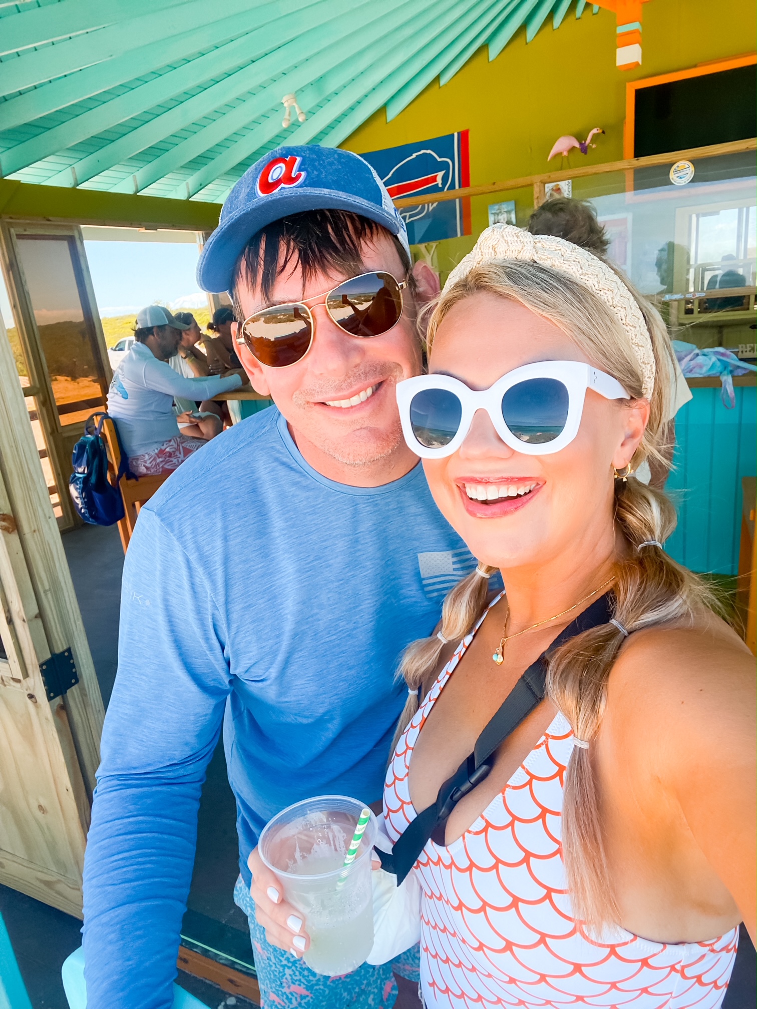 We ate lunch at Tipsy, a must-stop on the island. The Bush-Wackers are awesome! Turns out Ann, the owner of Tipsy, has a son who plays football at FSU, which made for a super fun connection for Mike. The beach in front of Tipsy is breathtaking, and a great place to sun and walk. It feels like you are on the island from “Castaway.” The shells were incredible, too!