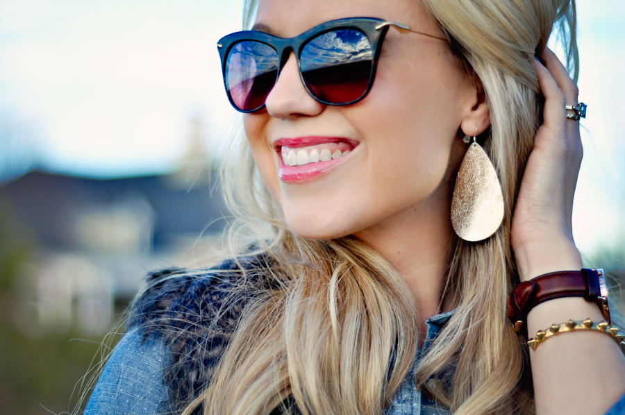 My golden earrings are actually made of leather! These hand-crafted earrings by Nickle & Suede are stunning in person, and incredibly light-weight. {The fact that they are just $21 amazes me, and means you need to purchase a pair pronto!}