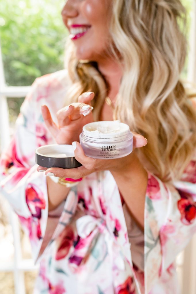 Colleen Rothschild is one of my top-two skin care lines, and the four products pictured above are my use-all-the-time favorites. I am sharing more about the Dual Enzyme Polish and the Eye Serum below, but the Cleansing Balm is terrific {great for getting makeup off at night and hydrating skin} and the Glycolic Acid Peel Pads are one of my favorite night-time skincare products EVER. I use a peel pad each evening after cleansing, in place of toner, and absolutely love the tingle and deep-clean! I believe these pads have significantly helped my skin’s clarity and even-tone over time!