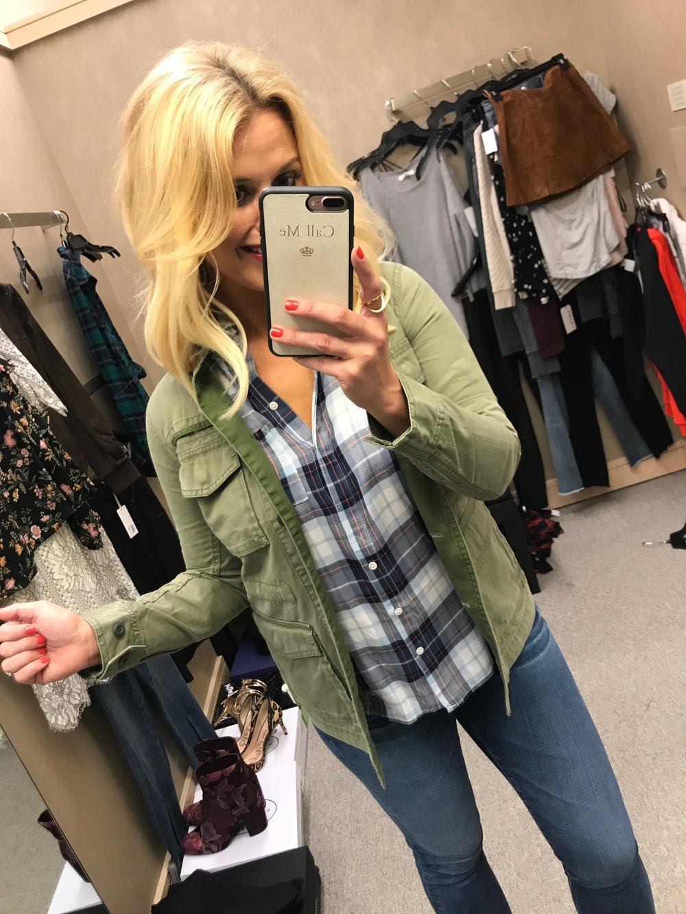 6. Madewell Military Jacket. A military style jacket is a Fall wardrobe staple and this one is a great fit! This is a piece you’ll wear year after year. I love it over tees, plaid shirts, casual dresses…almost anything! I am wearing an XS in the pic and had to size up in order to layer for Fall. If you are in between sizes on jackets, I recommend sizing up. Shop this $45 plaid shirt here.