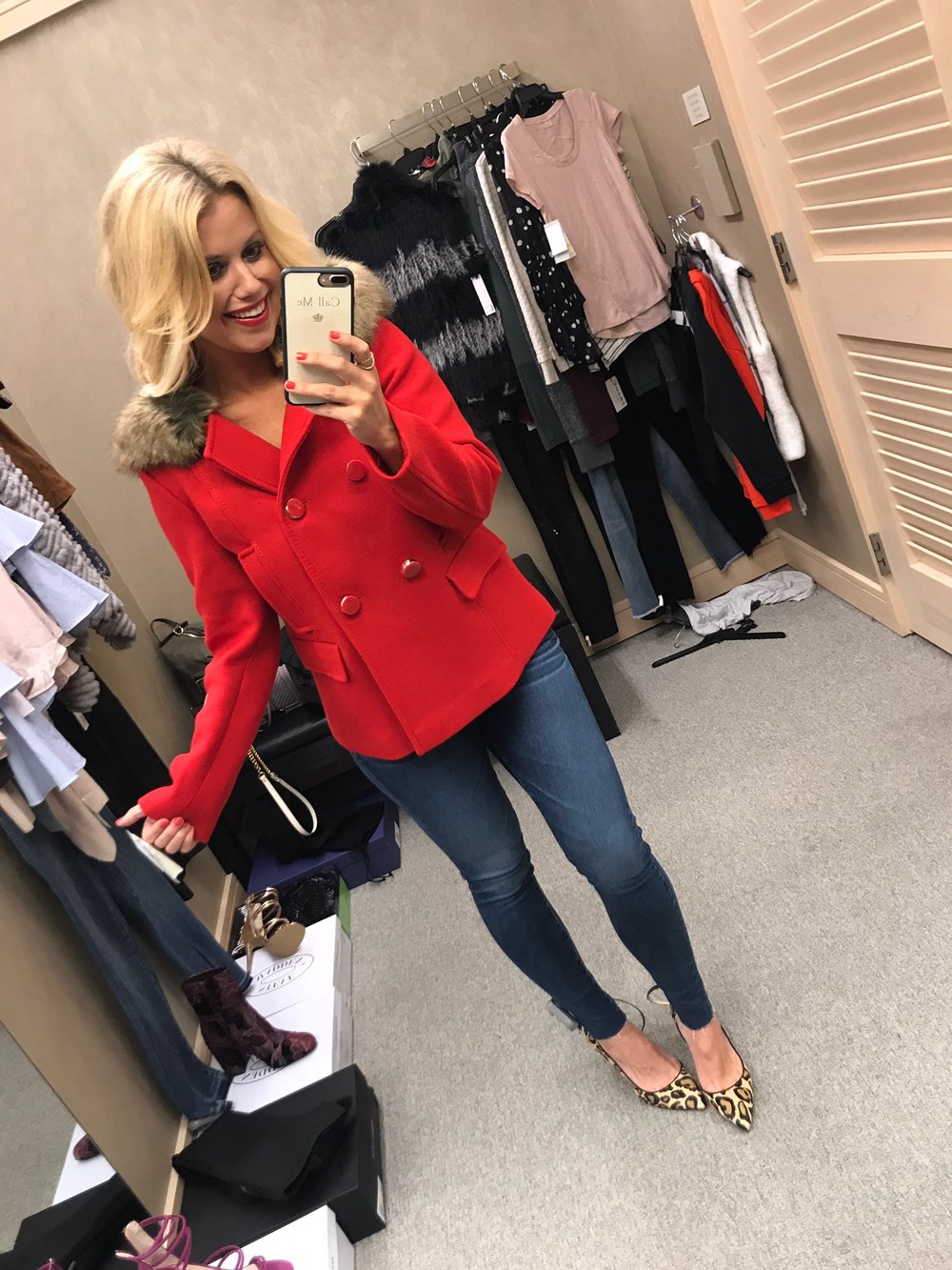 9. Kate Spade Coat. This is hands-down one of the cutest jackets I have ever seen! It’s a classic coat that will look fabulous for years to come. The red is the perfect shade and the fur collar detaches to change up the look! It runs TTS.